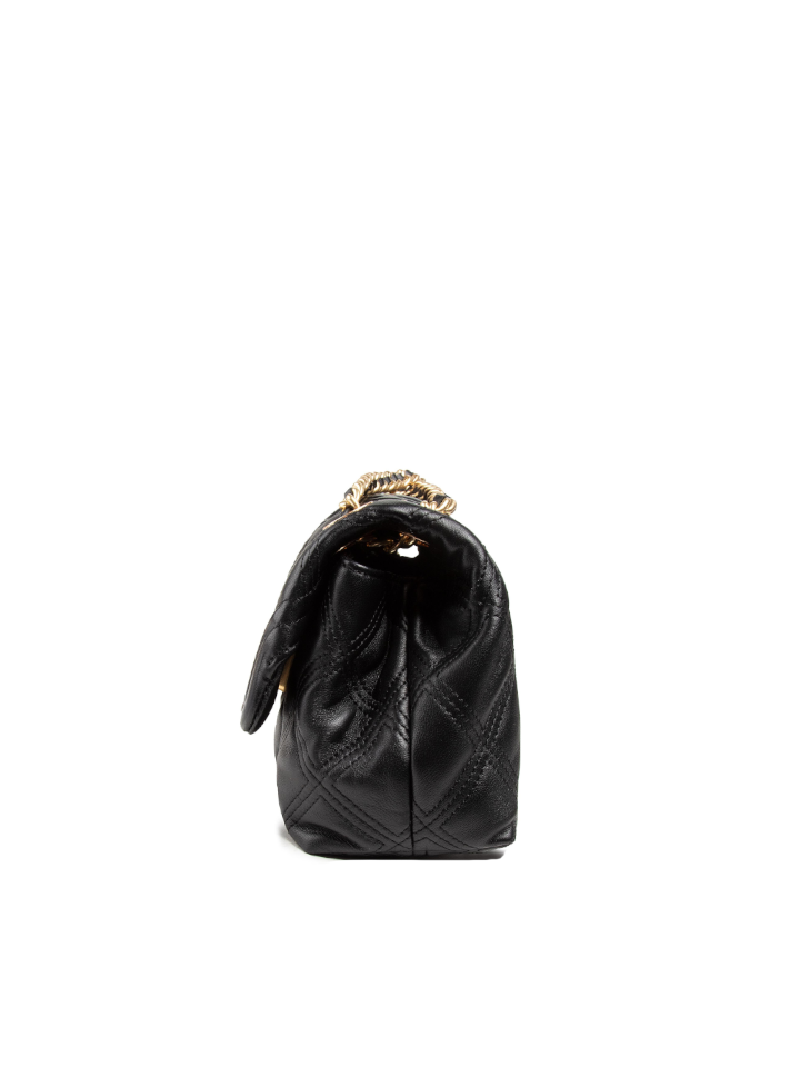 The Tory Burch 58102 Fleming Soft Small Convertible Shoulder Bag in black combines timeless elegance with versatile functionality. Crafted from supple leather, it offers a lightweight yet structured design ideal for daily use. The convertible strap allows you to switch effortlessly between shoulder and crossbody styles, adapting to your needs.