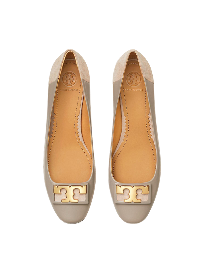 The Tory Burch Gigi flat offers a sleek, expert-crafted design with a 20mm rounded toe for a comfortable fit. In an elegant Gray Heron shade, these flats blend sophistication with versatility, making them suitable for both office and casual wear. The refined silhouette ensures all-day comfort without sacrificing style.