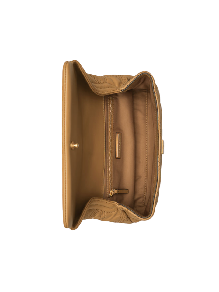 Elevate your accessory collection with the Tory Burch Fleming Soft Clutch in Tiramisu. Crafted from supple leather, this clutch offers a refined yet understated look ideal for both daytime and evening occasions.