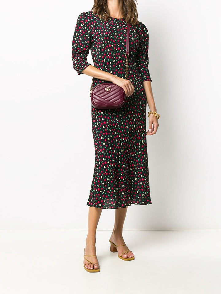 The Tory Burch 60227 Kira Chevron Small Camera Bag in Garnet combines refined craftsmanship with functional design.