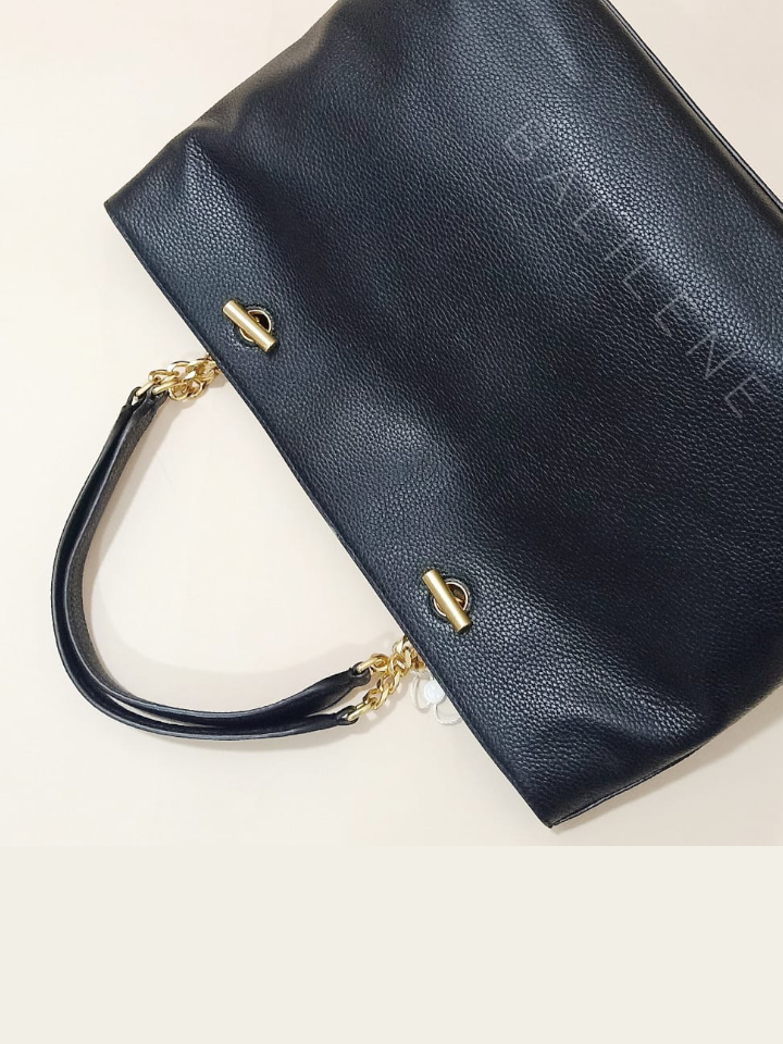 The Tory Burch 60415 Britten Satchel Bag in black offers a sophisticated blend of elegance and practicality.