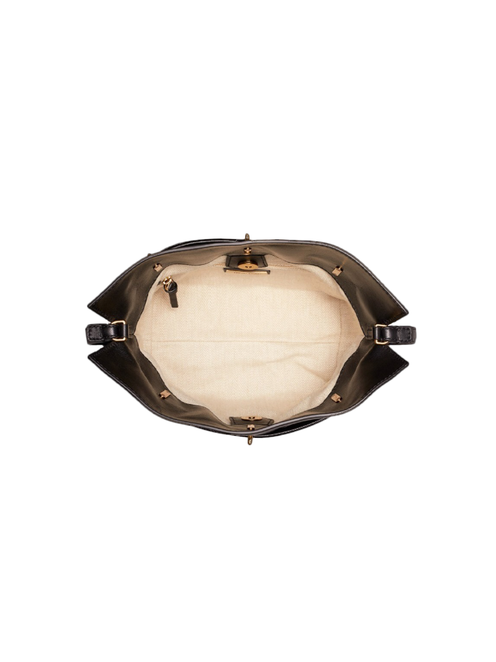 The Tory Burch 64439 Kira Chevron Mini Bucket Bag in Black combines sleek design with practical functionality. Crafted with signature chevron-quilted leather, it offers a refined texture and durable quality.