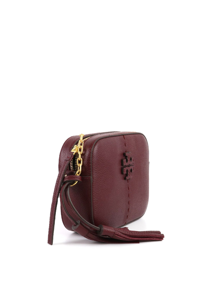 The Tory Burch 64447 McGraw Camera Bag in Claret offers a refined blend of style and practicality.