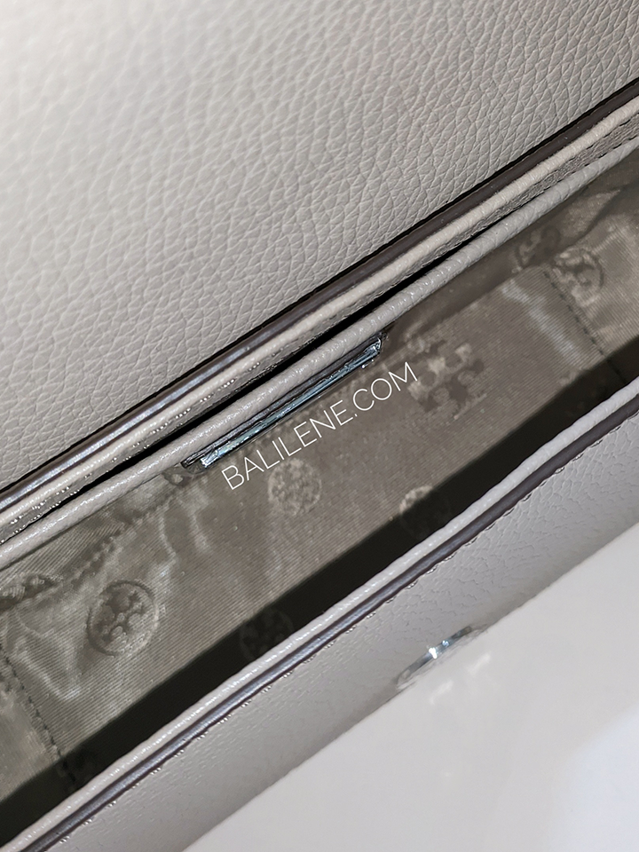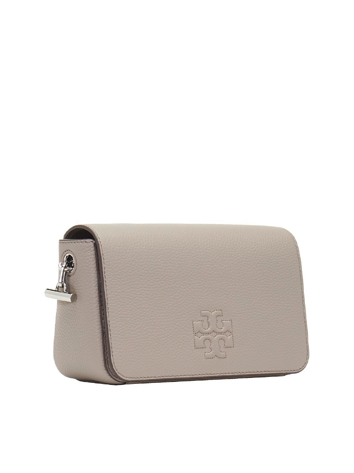 The Tory Burch Thea Mini Bag in French Gray is the perfect combination of style and functionality. Made with pebbled leather, it features an adjustable shoulder strap for comfortable wear.