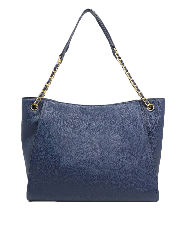 The Tory Burch Britten Small Slouchy Tote in Royal Navy combines refined craftsmanship with a casual silhouette, offering a versatile accessory for everyday use.