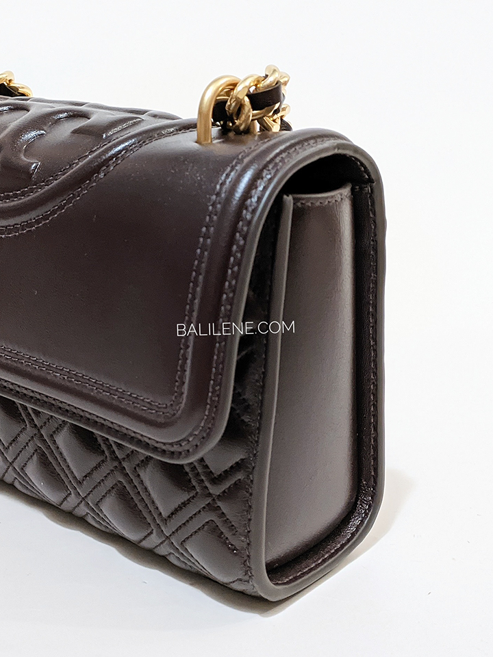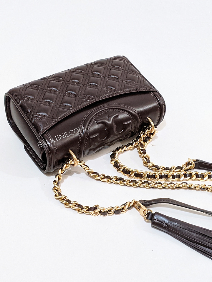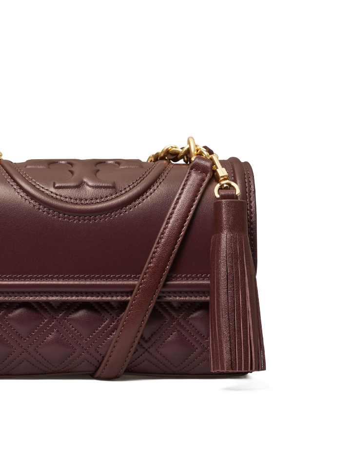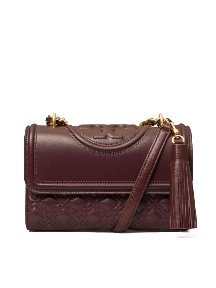 The Tory Burch Small Fleming Convertible Shoulder Bag in Tempranillo offers refined versatility with its compact design and elegant quilted leather. Its convertible strap allows easy transition from shoulder to crossbody, enhancing convenience for daily use.