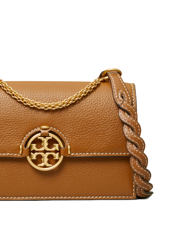 The Tory Burch Miller Mini Crossbody Bag in Light Umber offers a refined blend of style and functionality. Crafted for versatility, this compact bag features premium leather in a warm, natural tone that complements any outfit.
