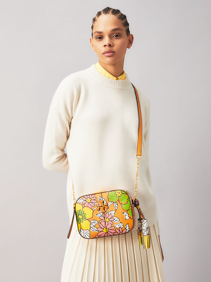 The Tory Burch 80588 McGraw Printed Camera Bag in Rust Wallpaper Floral blends refined craftsmanship with practical design. The adjustable strap ensures comfortable wear, making it perfect for everyday use or stylish outings. This bag combines timeless elegance and functional convenience for the discerning user.