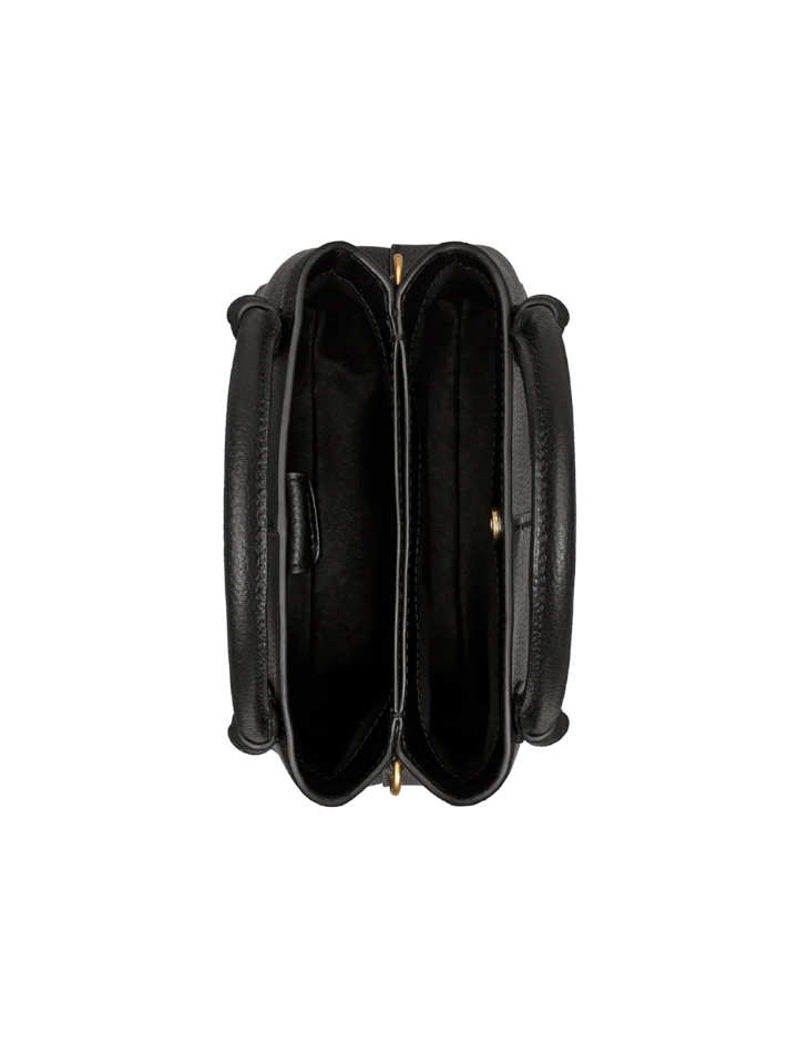 The Tory Burch 80792 McGraw Mini Satchel in Black offers a refined blend of compact design and sophisticated style. Crafted for versatility, its streamlined silhouette allows effortless transition from day to evening wear.