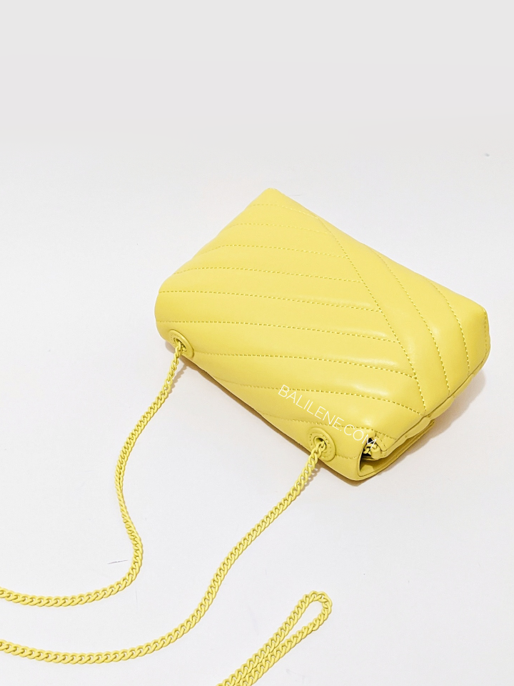 Carry your essentials without compromising on style with this Tory Burch 82237 Kira Chevron Powder Coated Mini Bag. Crafted from leather and sheepskin lining featuring a magnetic flip, metal chain strap, and two internal card slots, it's the perfect size for your everyday needs. Finished in the eye-catching Calendula color, it's a must-have for any modern wardrobe.