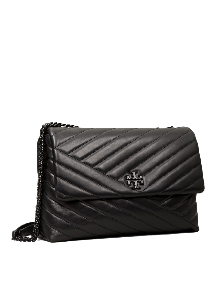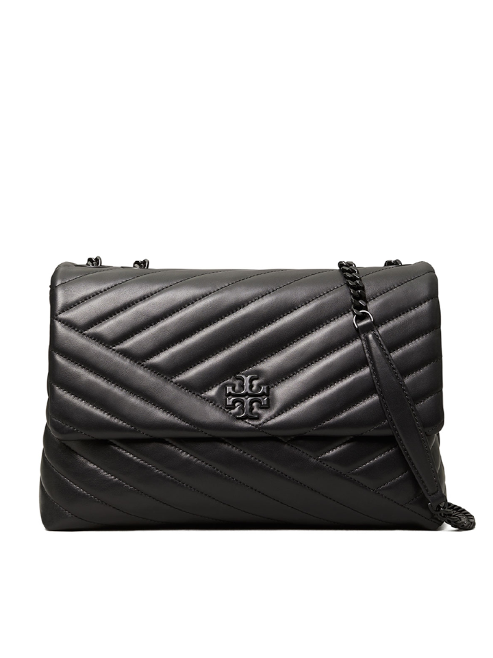 The Tory Burch 82775 Kira Chevron Powder Coated Medium Convertible Shoulder Bag in Black is a refined accessory designed for versatility and elegance. Crafted with a distinctive chevron-patterned powder-coated finish, this medium-sized bag offers a convertible shoulder strap allowing effortless transition between shoulder and crossbody styles.
