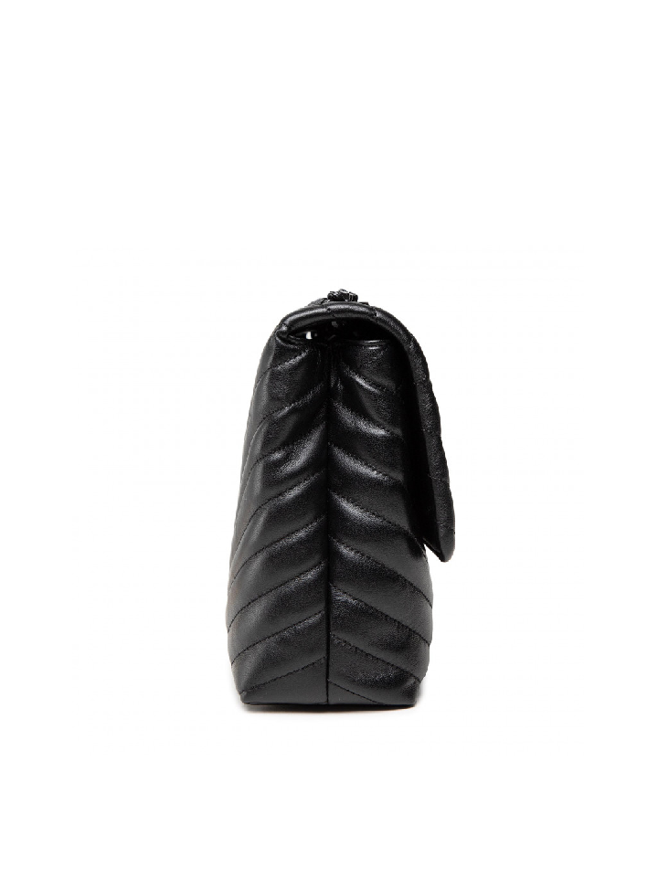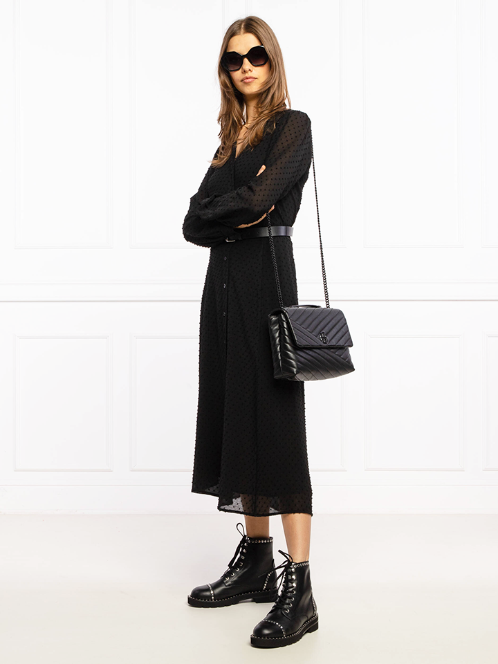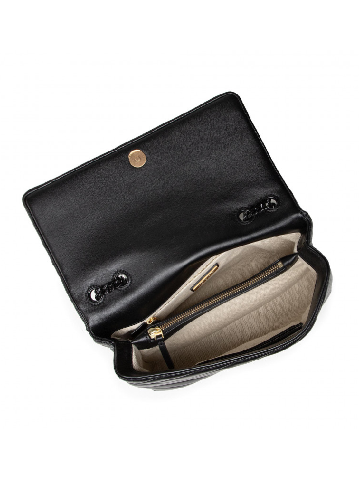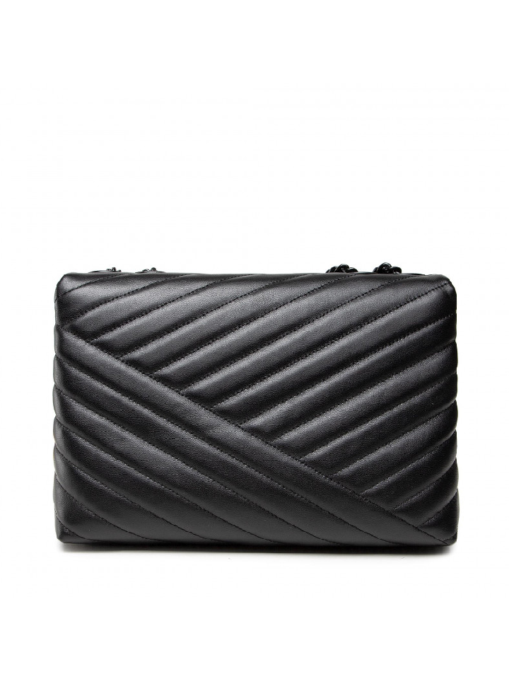 Tory Burch 82775 Kira Chevron Powder Coated Medium Convertible Shoulder Bag Black