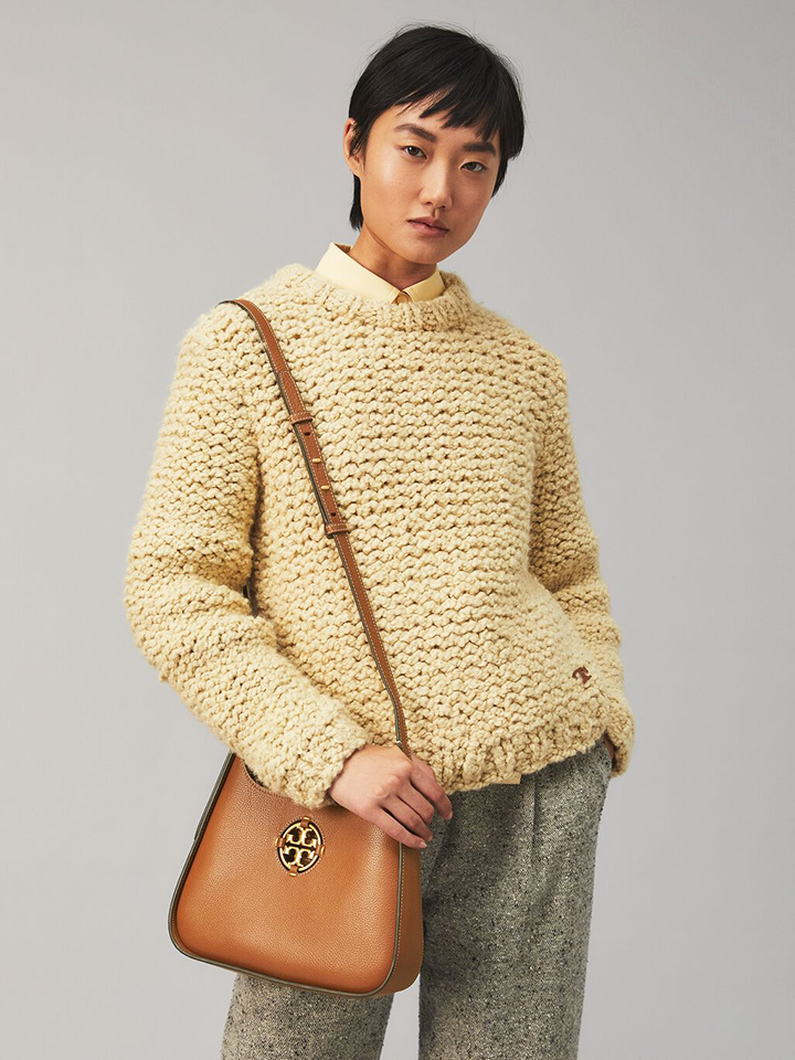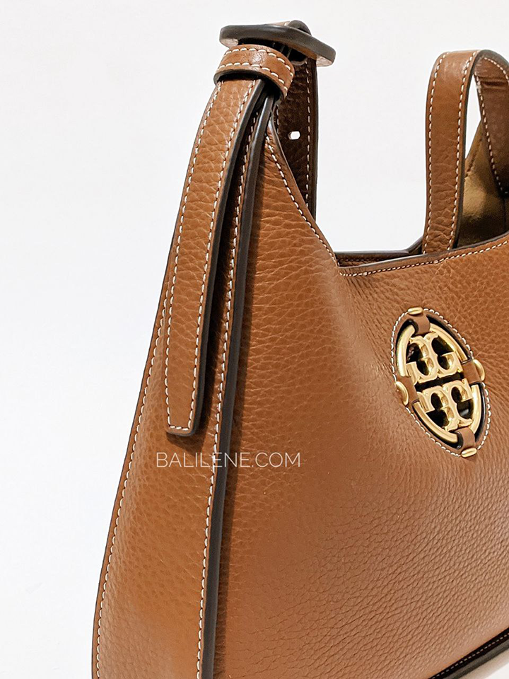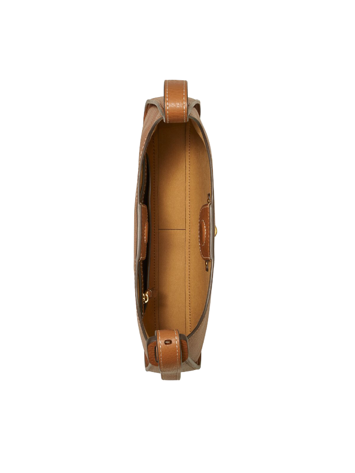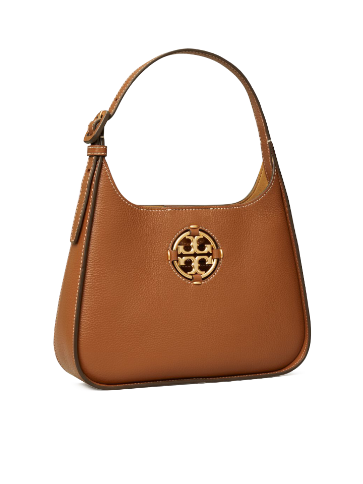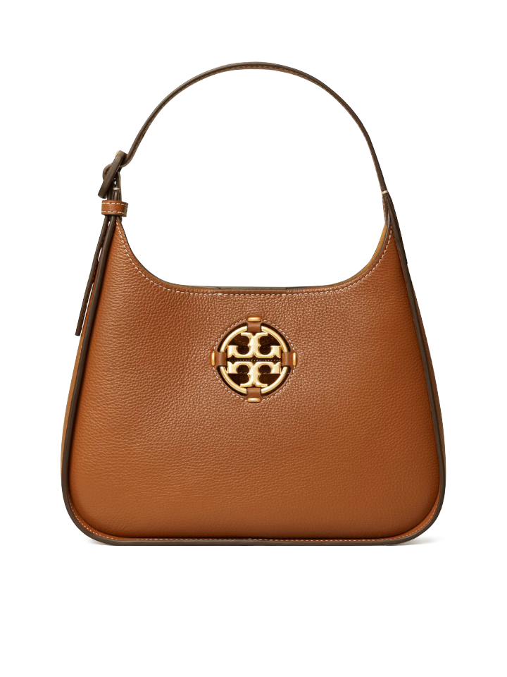 The Tory Burch 82982 Miller Small Hobo Bag in Light Umber offers a refined balance of classic style and practical design. Crafted from smooth leather, its compact shape and spacious interior provide convenient everyday carry without bulk.