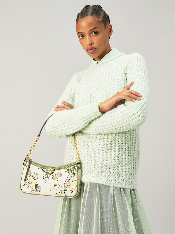 Elevate your accessory collection with the Tory Burch 86558 T Monogram Brocade Studio Bag in Winter Sage. Its muted winter sage color offers versatile elegance for seasonal styling, while the structured silhouette ensures polished day-to-night wear.