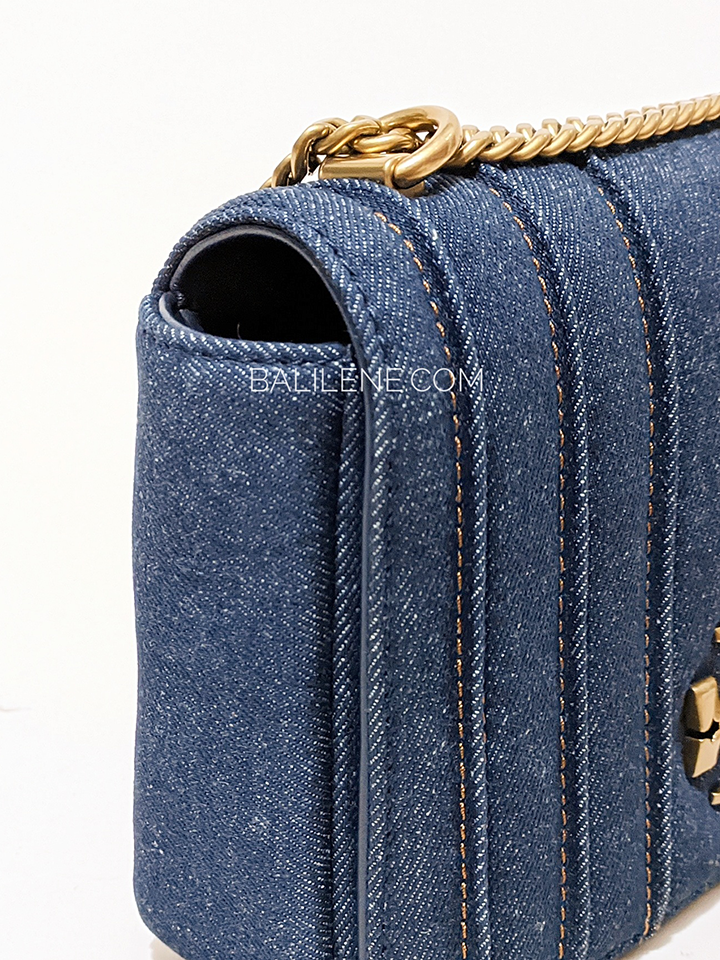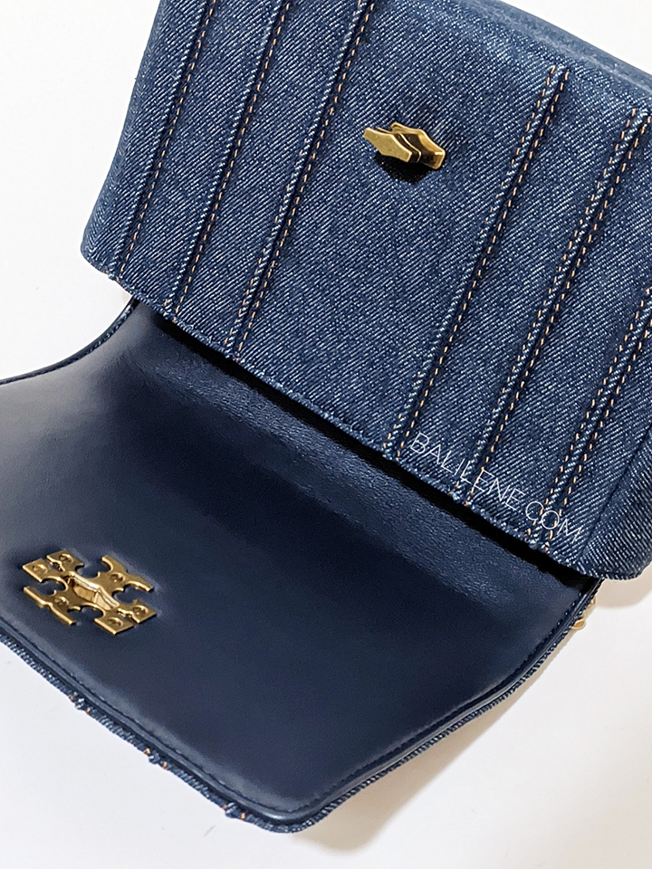 The Tory Burch 88115 Kira Denim Chain Shoulder Bag in Tory Navy blends casual denim with sophisticated design. Perfect for those seeking a refined statement piece that balances fashion and function.