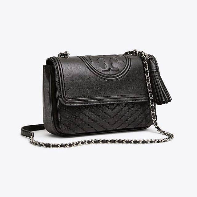Tory Burch Fleming Distressed Flap Shoulder Black