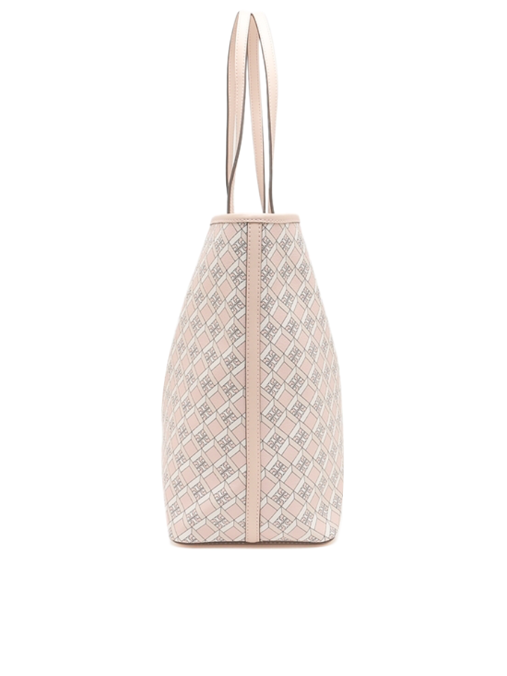 The convenient main compartment and slip pocket provide plenty of storage for all your essentials. Add a touch of sophistication to your look with the Dusted Blush Tory Burch Geo Logo Tote.