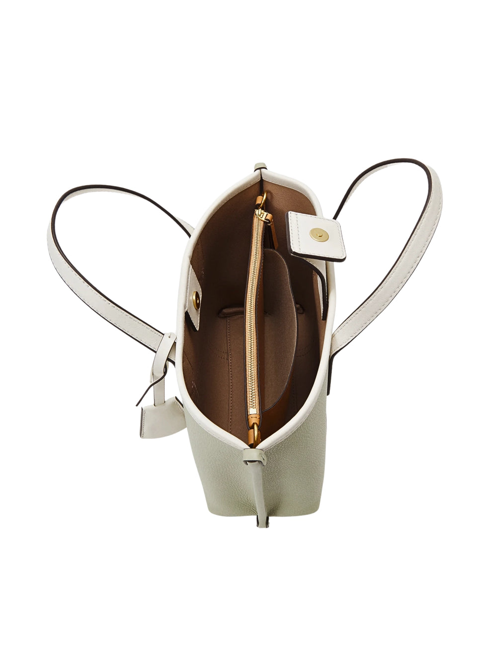 Crafted in signature olive sprig with contrasting colorblock detailing, this compact tote features three distinct compartments for organized storage of essentials.