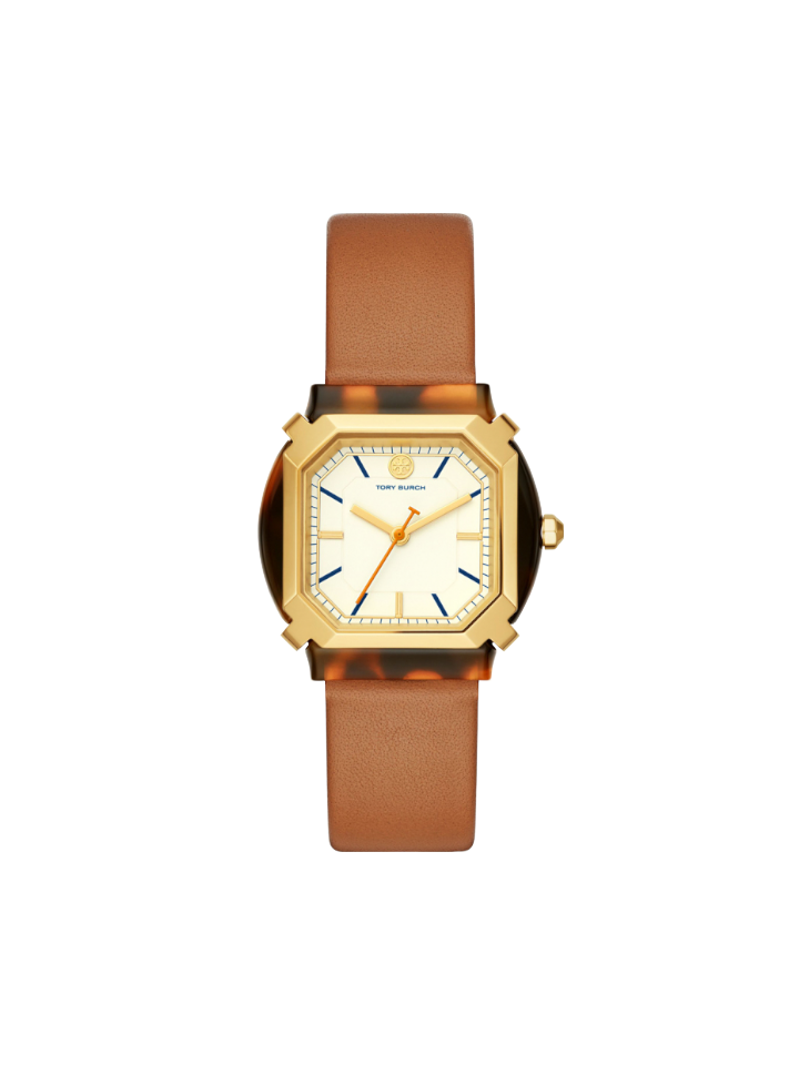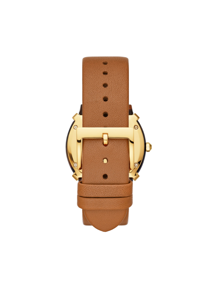 The Tory Burch Blake Three-Hand Brown Leather Watch combines timeless design with precise functionality. Featuring a classic three-hand movement, this watch offers reliable timekeeping paired with a rich brown leather strap that ensures comfort and durability.