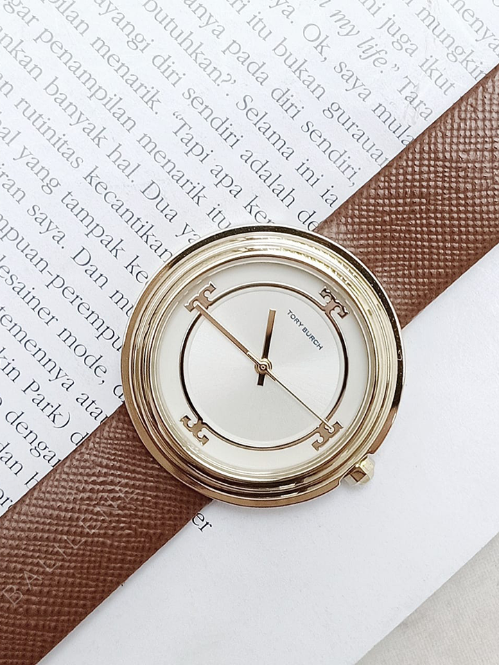 Tory Burch TBW6100 Bailey Watch Luggage Leather Gold-Tone Ivory